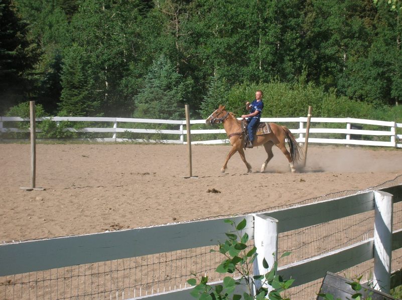 Here's Bex competing in the rodeo on our last day at the ranch.